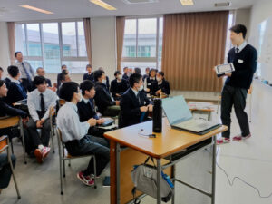 鈴与グループ、建設システム、フジ物産、天野回漕店の4社25名の企業の方々が来校し、生徒たちに伴走しました。